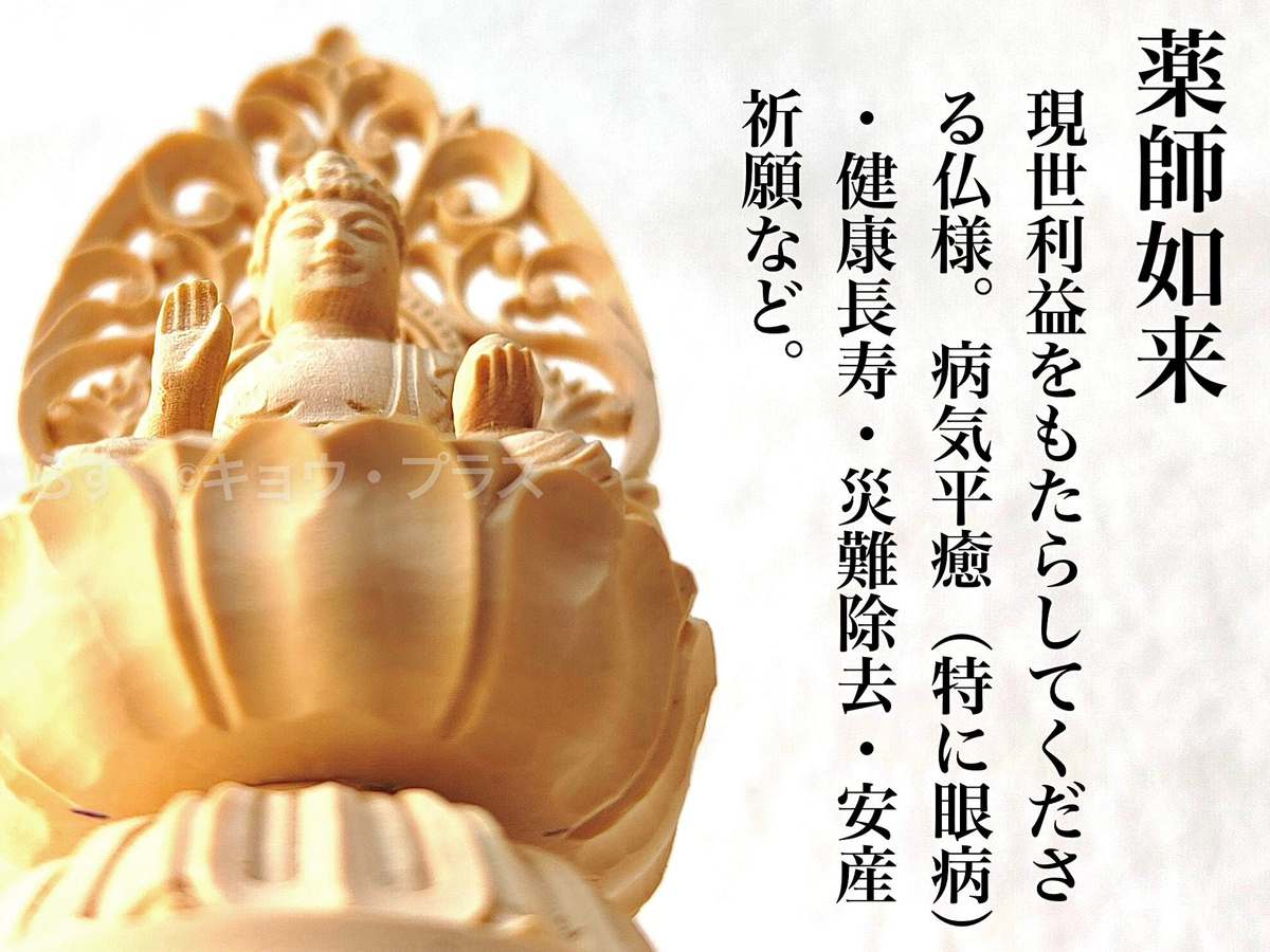 仏教で東方の浄瑠璃世界の仏。詳しくは薬師瑠璃光如来といい、大医王、医王善逝とも呼ばれる。衆生の病と苦しみを癒やし、救うことが出来るとされているため、病などから救う医薬の仏として尊信される。形像は右手を施無畏印に結び左手には薬壺をもつ姿で広く知られている。
