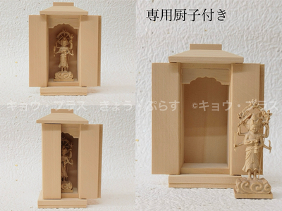 ミニサイズの仏像と専用の厨子のセットになります。軽量でコンパクトな仏像はどこでも祈りの空間を創り出してくれます。専用の厨子にてお祀りいただけます。