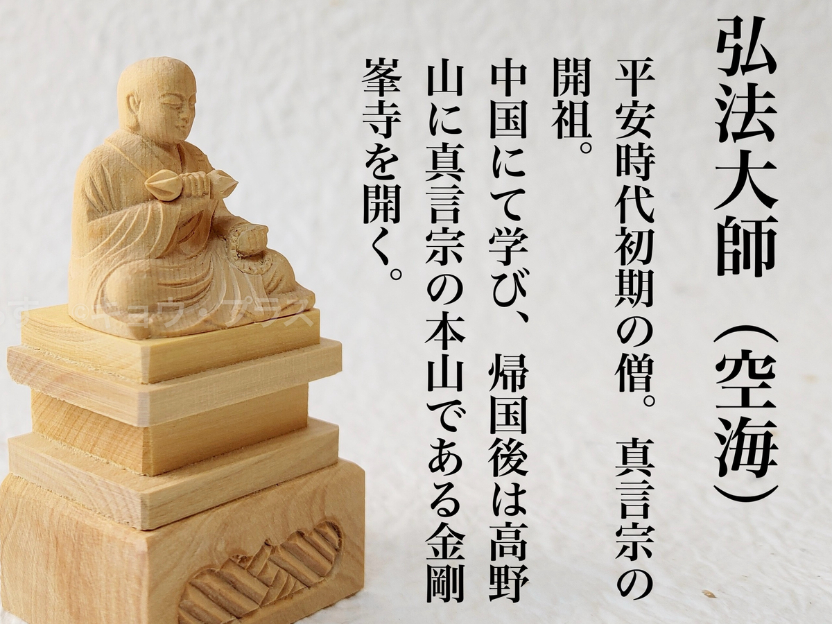 日本平安時代初期の僧。真言宗の開祖。遣唐使の留学僧として唐に渡り密教を学ぶ。帰国後に高野山に真言宗の本山である金剛峯寺を開く。また真言宗の布教だけでは無く多彩な文化活動を行った人物としても知られている。