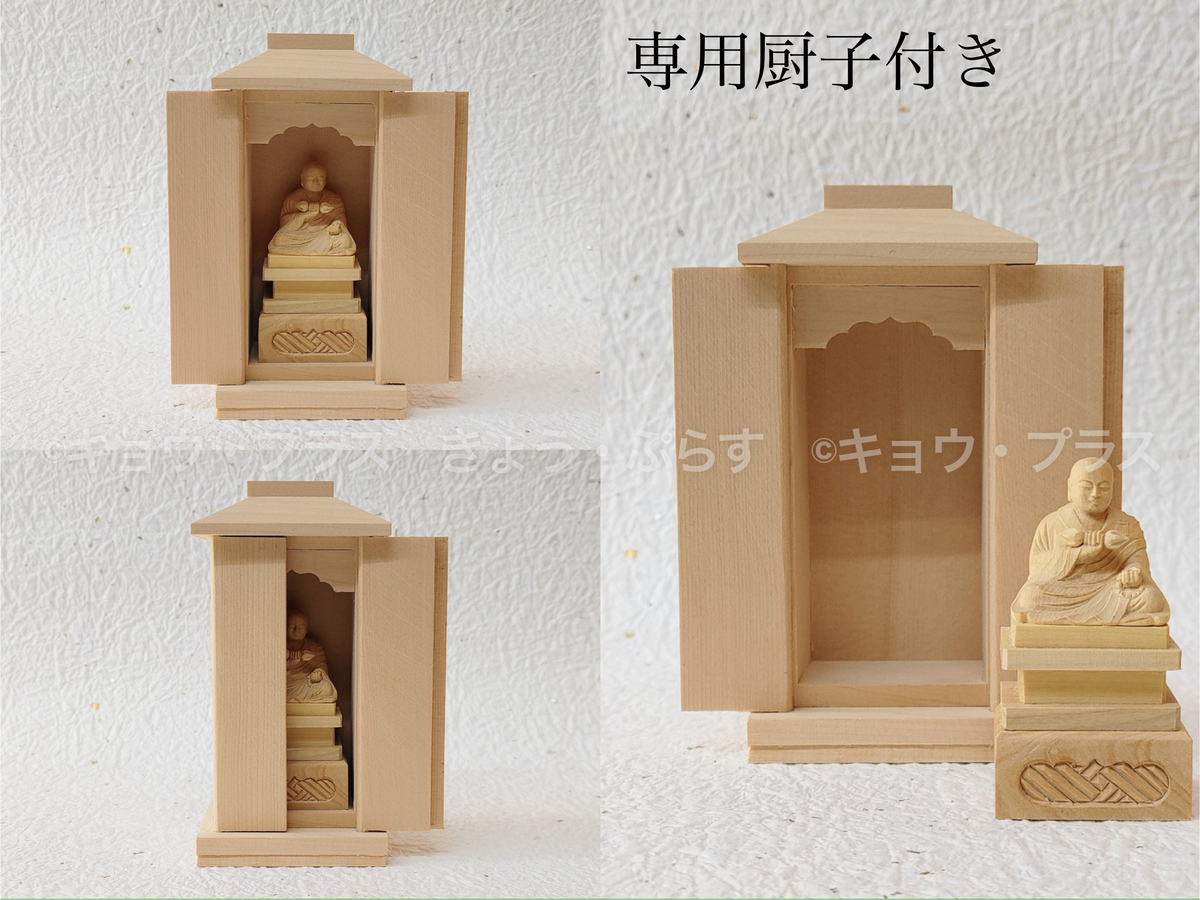 ミニサイズの仏像と専用の厨子のセットになります。軽量でコンパクトな仏像はどこでも祈りの空間を創り出してくれます。専用の厨子にてお祀りいただけます。