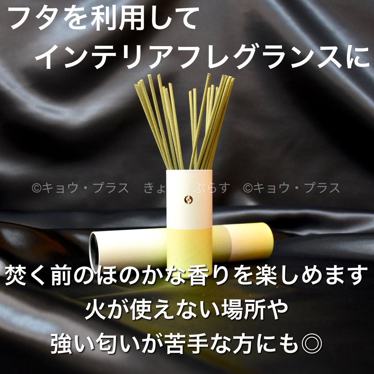 また、火を付ける前から香りがほのかに漂うお香の特徴に着目し、 お部屋で飾れる仕様になっています。ペットを飼っている方や煙が苦手な方、火が使えない場所でも香りを楽しめます。