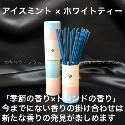 季節の香りを軸に2つの香りを掛け合わせこれまでなかった新しい香りのお香です。季節の香りとトレンドの香りを取り入れられた香りが新しい空間を創ってくれます。