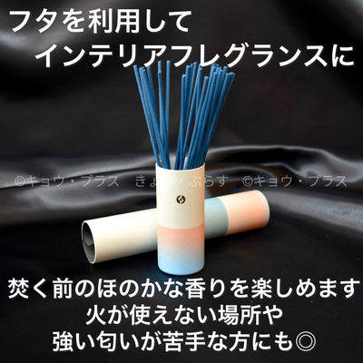 また、火を付ける前から香りがほのかに漂うお香の特徴に着目し、お部屋で飾れる仕様になっています。ペットを飼っている方や煙が苦手な方、火が使えない場所でも香りを楽しめます。