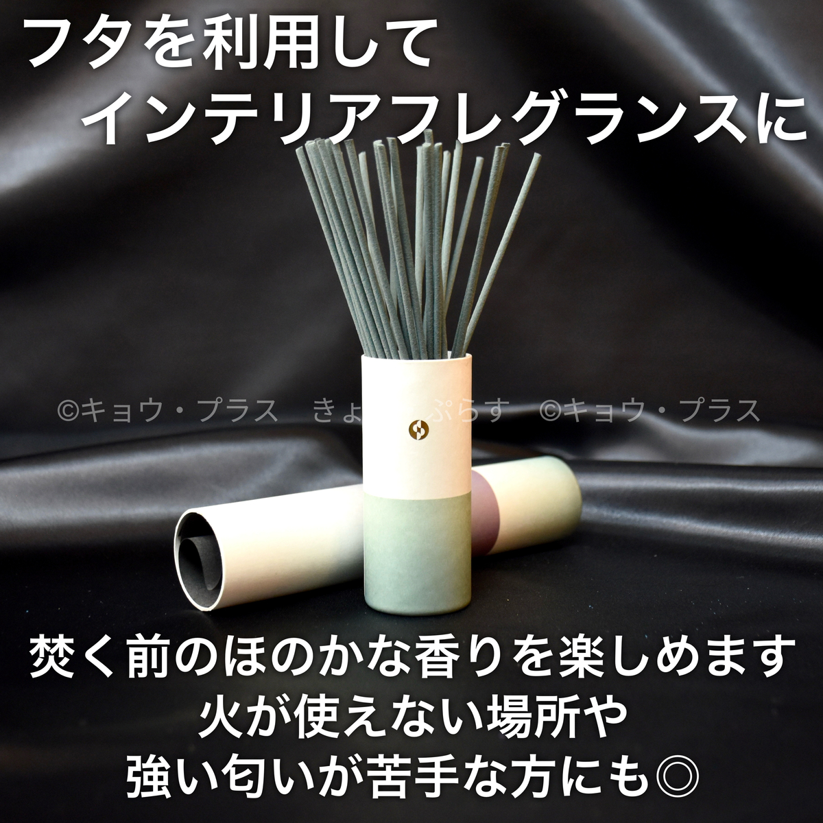 また、火を付ける前から香りがほのかに漂うお香の特徴に着目し、お部屋で飾れる仕様になっています。ペットを飼っている方や煙が苦手な方、火が使えない場所でも香りを楽しめます。
