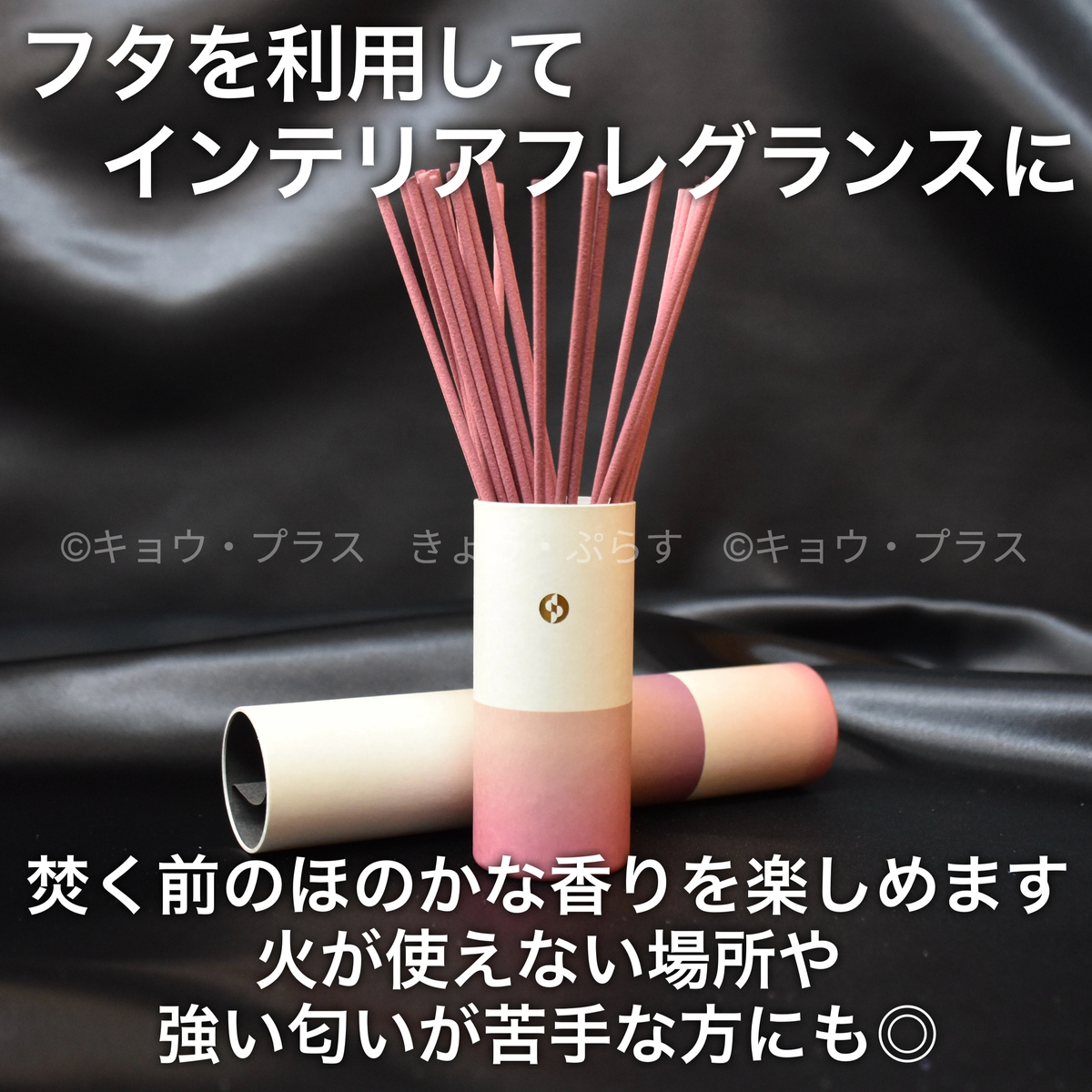 また、火を付ける前から香りがほのかに漂うお香の特徴に着目し、お部屋で飾れる仕様になっています。ペットを飼っている方や煙が苦手な方、火が使えない場所でも香りを楽しめます。