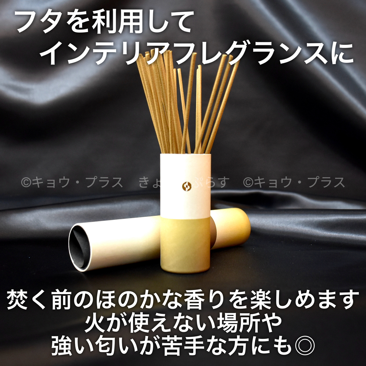 また、火を付ける前から香りがほのかに漂うお香の特徴に着目し、お部屋で飾れる仕様になっています。ペットを飼っている方や煙が苦手な方、火が使えない場所でも香りを楽しめます。