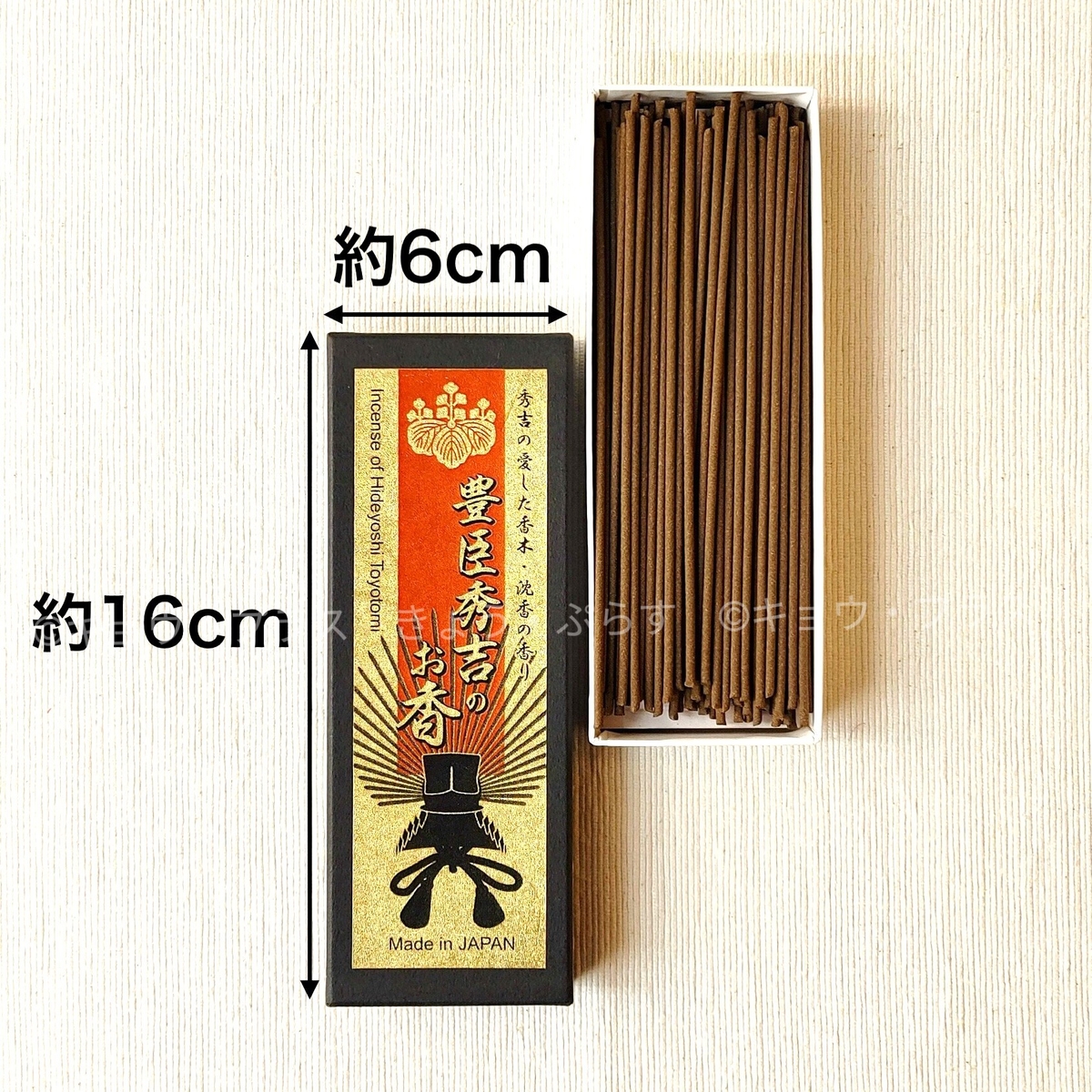 ・秀吉が愛した香木・沈香の香り 豊臣秀吉のお香…サイズ:160×60×25㎜(約)