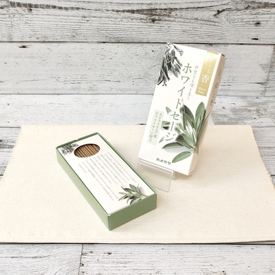 カリフォルニア産ホワイトセージ粉末を配合し、ホワイトセージ本来の煙と香りにこだわったお線香です。お部屋焚きのお香としてもお楽しみいただけることは勿論、短く折れば時間の調整が可能に、複数本まとめて使えば香りと煙をしっかり堪能できるのがお線香ならではの魅力です。